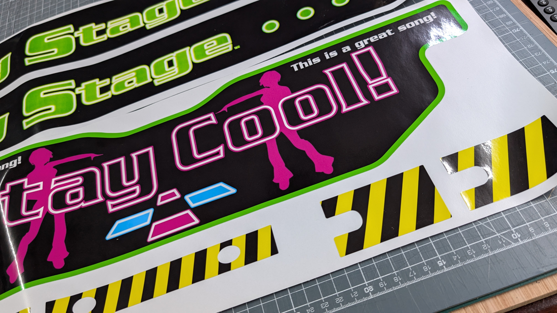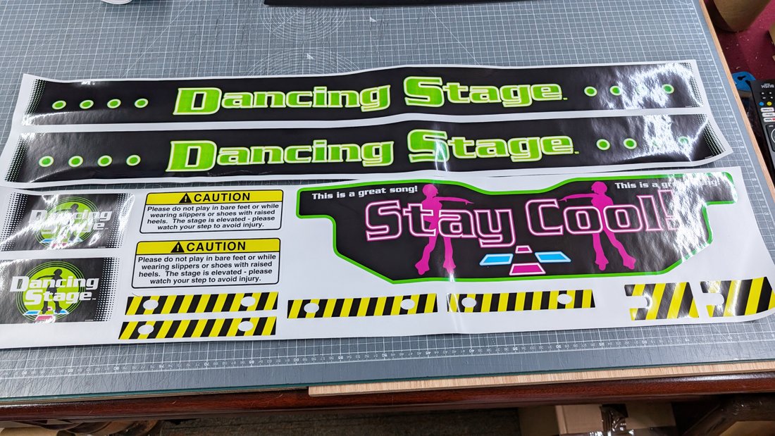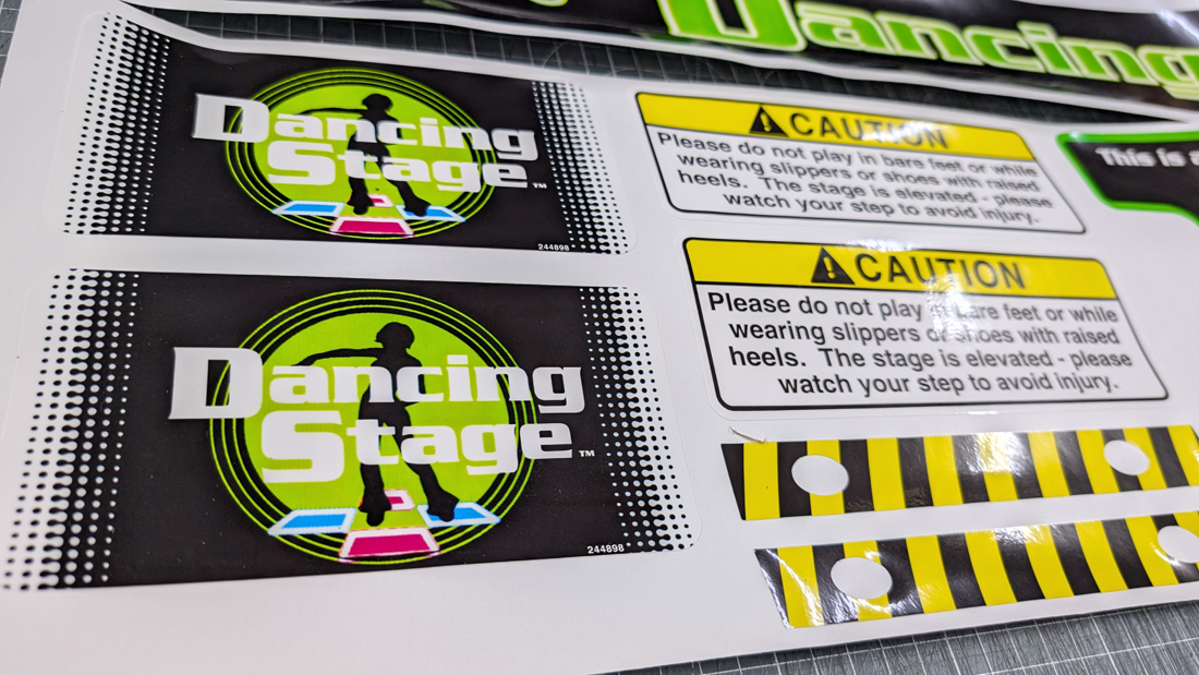Set of reproduction base stickers for Konami’s Dancing Stage.