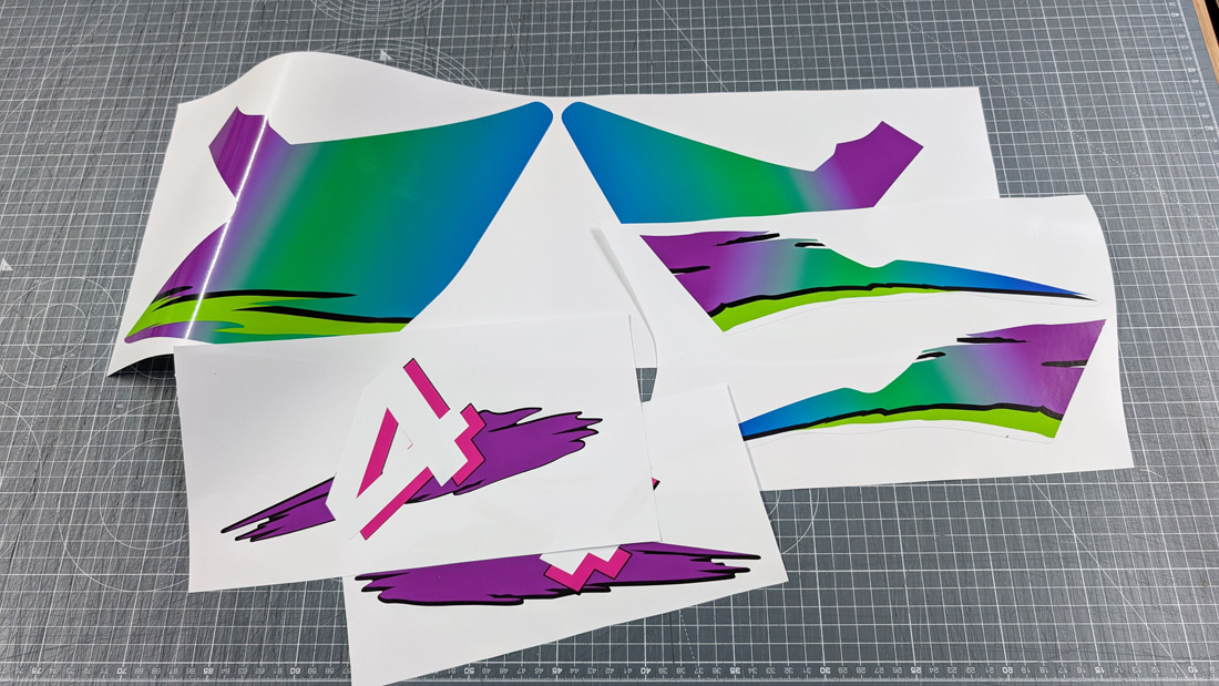 Printed on to premium grade Mactac adhesive vinyl with a gloss laminate, and cut to original shape.