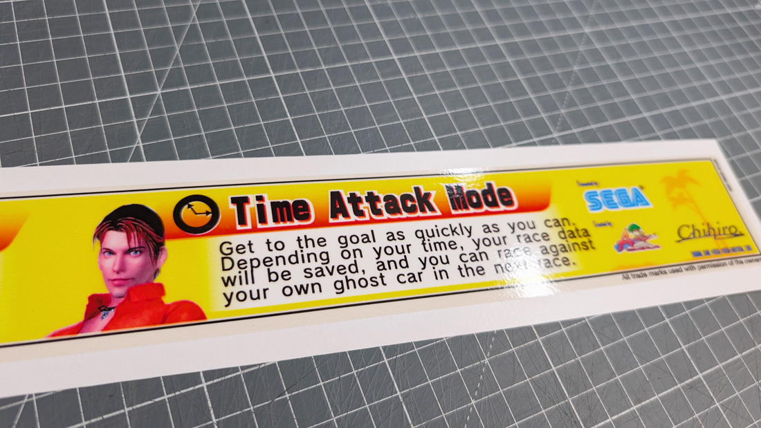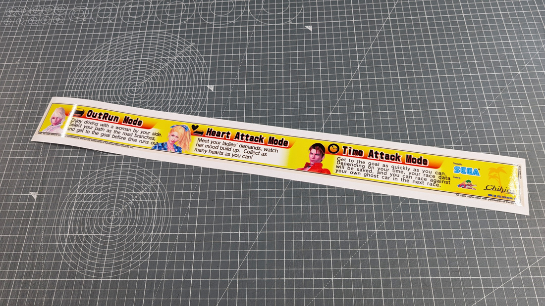 Monitor bezel instructions decal for Sega OutRun 2 and OutRun 2 SP cabinets.
