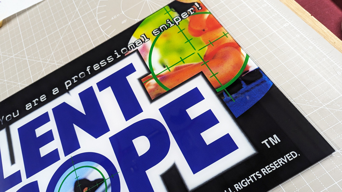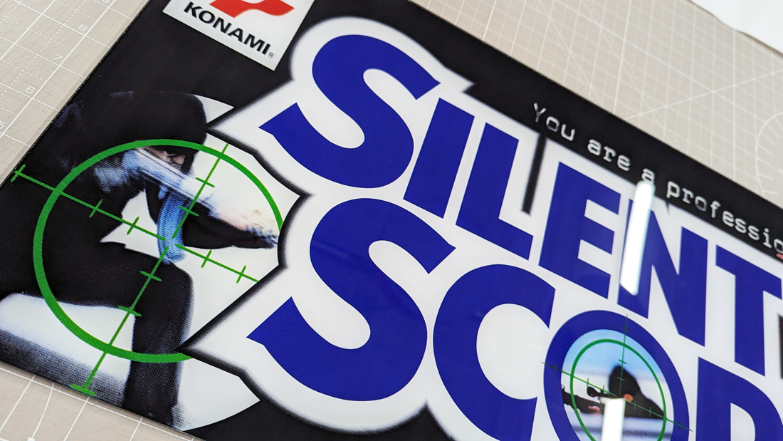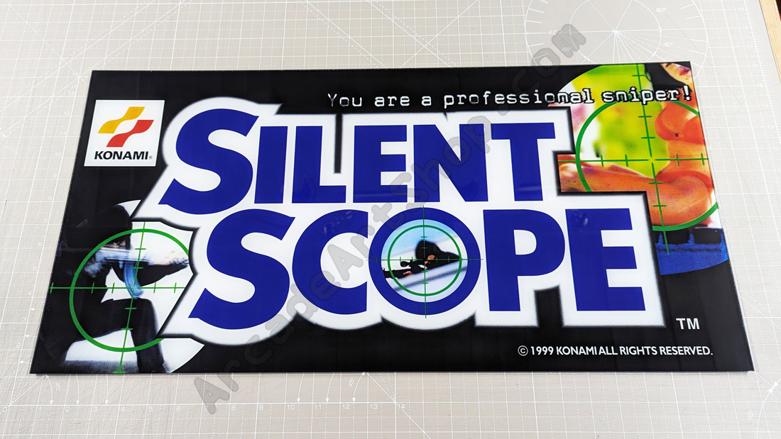 Reproduction marquee Konami’s Silent Scope. Reproduced from a scanned original.